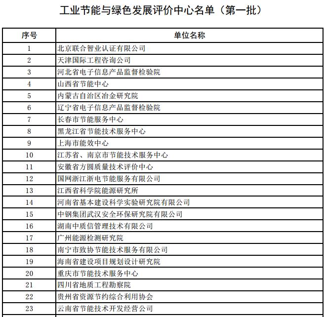 工業(yè)節(jié)能與綠色發(fā)展評價(jià)中心名單