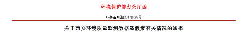 環(huán)保部:關于西安環(huán)境質(zhì)量監(jiān)測數(shù)據(jù)造假案有關情況的通報