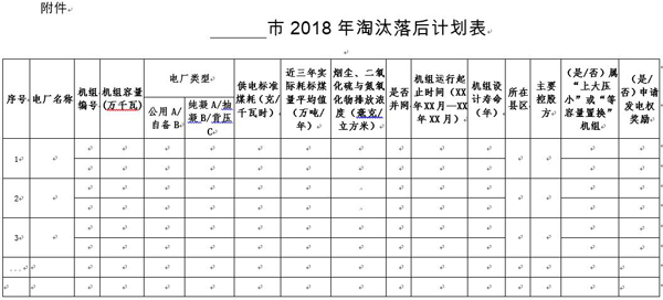 二、嚴(yán)格執(zhí)行國家及我省制定的煤電淘汰落后標(biāo)準(zhǔn),結(jié)合各市前期統(tǒng)計(jì)的“十三五”期間淘汰機(jī)組的摸底情況,對(duì)轄區(qū)內(nèi)煤電機(jī)組進(jìn)行嚴(yán)格篩查,根據(jù)篩查情況認(rèn)真填報(bào)《 ? ?市2018年淘汰落后計(jì)劃表》,報(bào)送計(jì)劃中要說明列入淘汰計(jì)劃機(jī)組是否申請(qǐng)發(fā)電權(quán)獎(jiǎng)勵(lì)。于2018年1月底前將本市2018年電力行業(yè)淘汰落后計(jì)劃以正式文件報(bào)省經(jīng)信委。