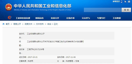工業(yè)和信息化部辦公廳關(guān)于印發(fā)2017年第三批行業(yè)標(biāo)準(zhǔn)制修訂計(jì)劃的通知
