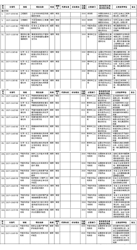 日前,工信 部印發(fā)2017年第三批行業(yè)標(biāo)準(zhǔn)制修訂計(jì)劃。2017年第三批共安排項(xiàng)目計(jì)劃426項(xiàng)。其中制定325項(xiàng),修訂101項(xiàng);產(chǎn)品類標(biāo)準(zhǔn)298項(xiàng),工程建設(shè)標(biāo)準(zhǔn)42項(xiàng),節(jié)能與綜合利用標(biāo)準(zhǔn)43項(xiàng),安全生產(chǎn)標(biāo)準(zhǔn)2項(xiàng),標(biāo)準(zhǔn)樣品41項(xiàng)。其中涉及燒結(jié)煙氣脫硫、焦?fàn)t脫硫脫硝、濃鹽水處理、餐廚廢棄物、污染場地等多項(xiàng)環(huán)保標(biāo)準(zhǔn)。