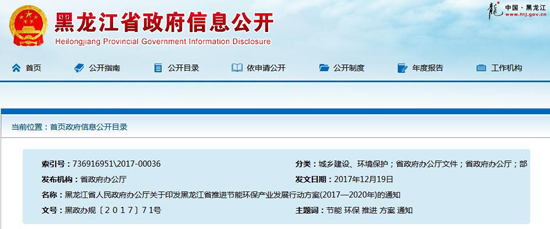 黑龍江省人民政府辦公廳關(guān)于印發(fā)黑龍江省推進節(jié)能環(huán)保產(chǎn)業(yè)發(fā)展行動方案(2017—2020年)的通知