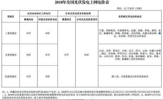為落實(shí)國務(wù)院辦公廳《能源發(fā)展戰(zhàn)略行動計劃(2014-2020)》關(guān)于新能源標(biāo)桿上網(wǎng)電價逐步退坡的要求,合理引導(dǎo)新能源投資,促進(jìn)光伏發(fā)電產(chǎn)業(yè)健康有序發(fā)展,決定調(diào)整2018年光伏發(fā)電標(biāo)桿上網(wǎng)電價政策。經(jīng)商國家能源局,現(xiàn)就有關(guān)事項(xiàng)通知如下: