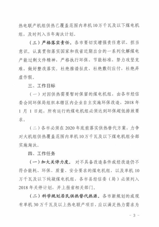 ??為進(jìn)一步落實(shí)省政府辦公廳《關(guān)于印發(fā)山西省2017-2018年秋冬季大氣污染綜合治理攻堅(jiān)行動(dòng)方案的通知》(晉政辦發(fā)〔2017〕123號(hào))精神,推進(jìn)電力行業(yè)清潔高效生產(chǎn),解決我省電力行業(yè)一些落后產(chǎn)能長(zhǎng)期存在的問(wèn)題,特制定《電力行業(yè)清潔高效生產(chǎn)工作方案》,現(xiàn)印發(fā)你們,請(qǐng)認(rèn)真組織落實(shí),抓好整改實(shí)施。