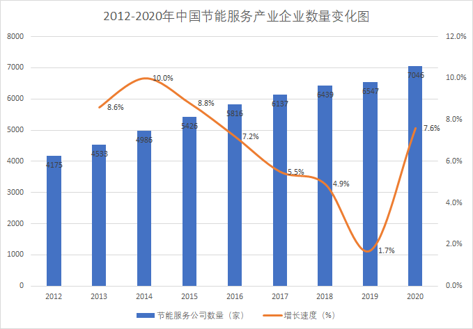 2012-2020年,全國(guó)從事節(jié)能服務(wù)業(yè)務(wù)的企業(yè)數(shù)量逐年上升,2020年增速有所提升。