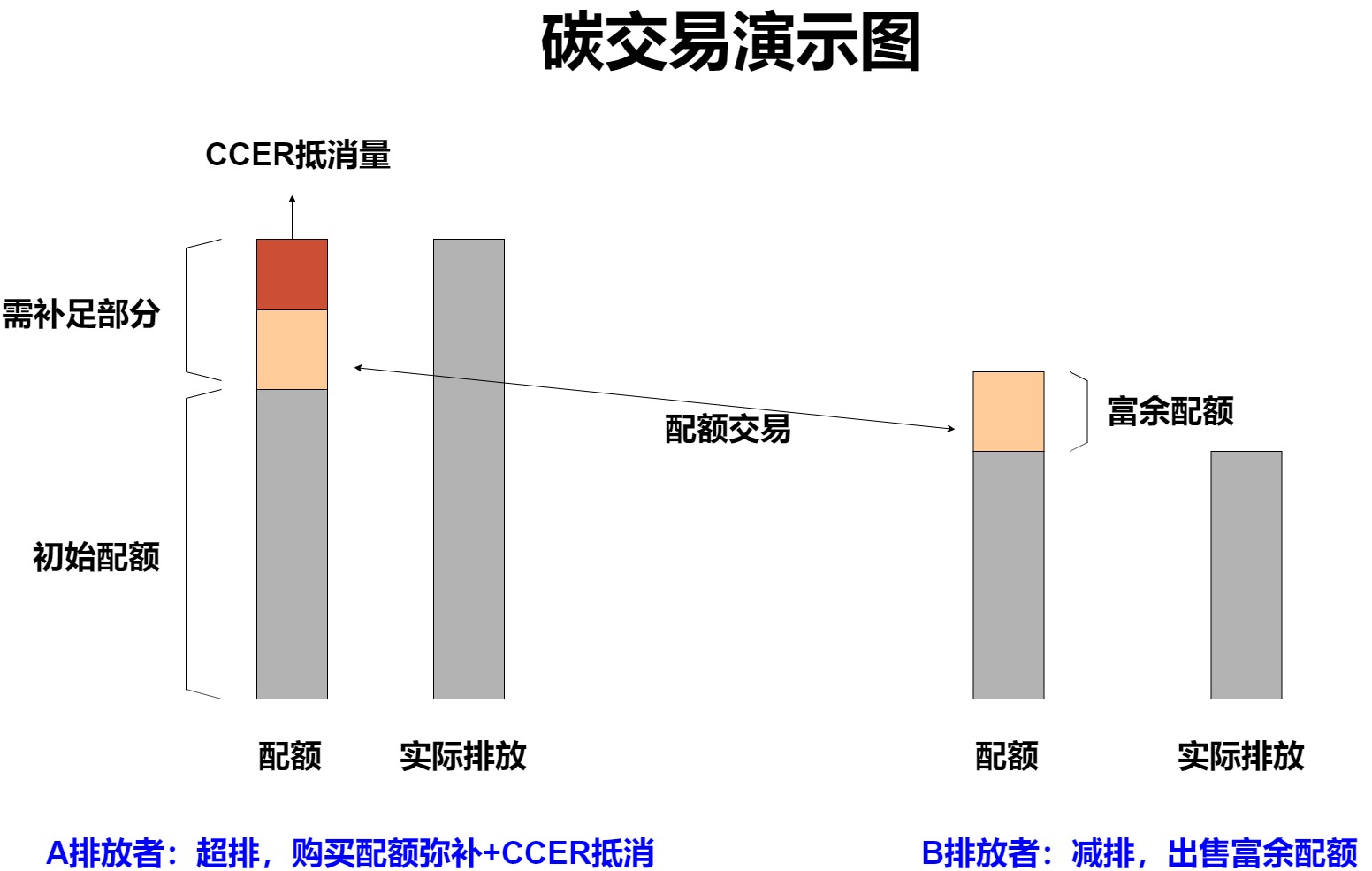 碳交易是碳中和政策下的特殊產(chǎn)物。為了實現(xiàn)碳減排,以后企業(yè)都會實施碳排放配額制,這樣就會產(chǎn)生碳排放的供需錯配,而供需錯配就會衍生出碳交易。而碳交易自然衍生出碳交易市場和碳交易所。