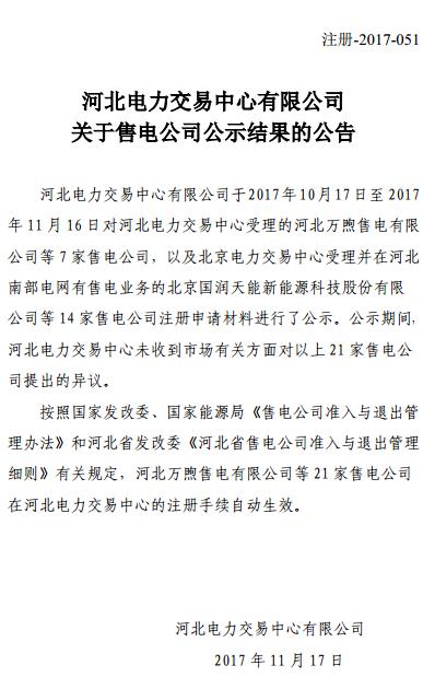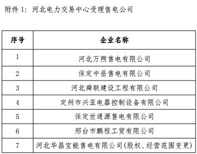 河北電力交易中心公示新增21家售電公司名單