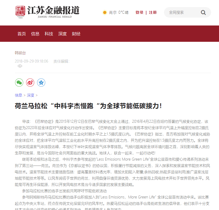 江南時(shí)報(bào)網(wǎng):荷蘭馬拉松“中科宇杰慢跑“為全球節(jié)能低碳接力!