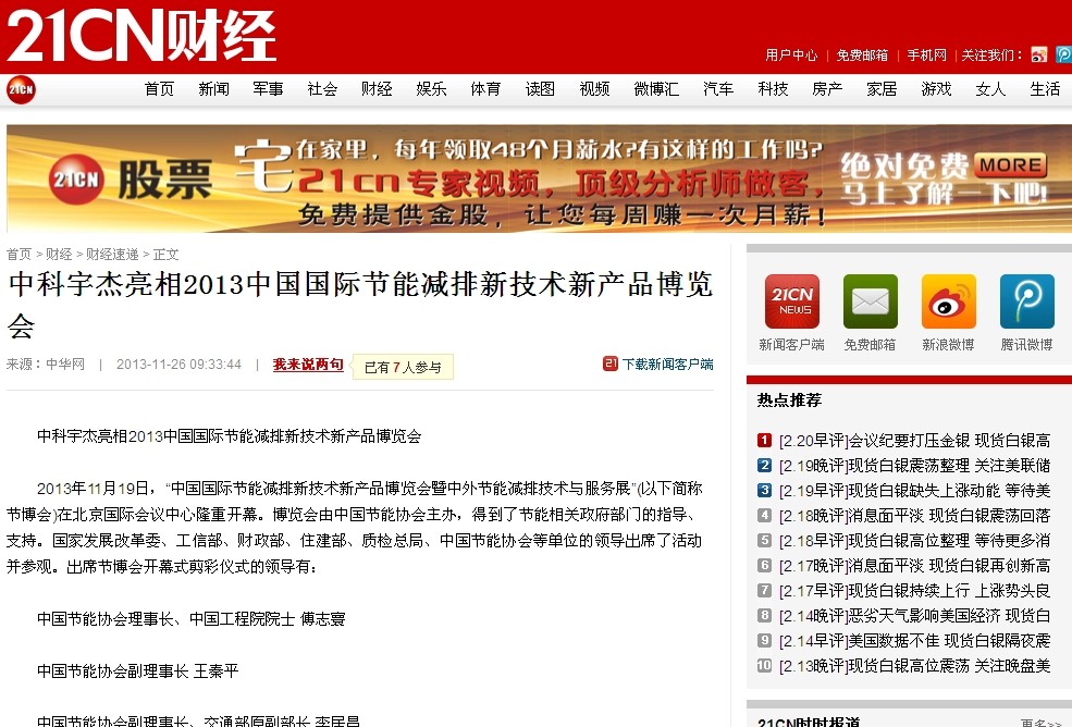 中科宇杰亮相2013中國(guó)國(guó)際節(jié)能減排新技術(shù)新產(chǎn)品博覽會(huì)