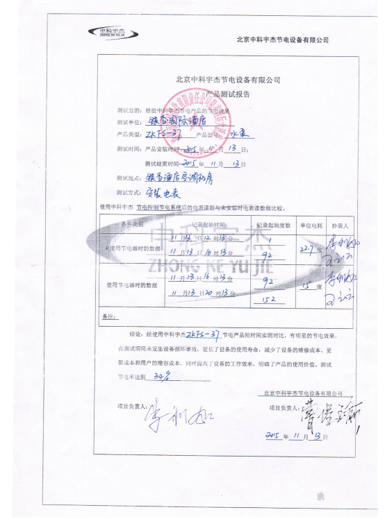 安裝調(diào)試并驗(yàn)收后,通過現(xiàn)場(chǎng)讀表,顯示節(jié)電達(dá)到34%,節(jié)電效果明顯。按質(zhì)保十年計(jì)算,此項(xiàng)節(jié)能工程能為榆林市銀杏國(guó)際酒店帶來四百萬(wàn)以上人民幣的直接經(jīng)濟(jì)效益。