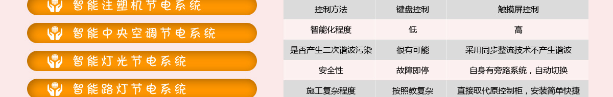自主研發(fā)的CUP重要處理器,直觀的將節(jié)電率,用電時(shí)間,電壓,電流等等數(shù)據(jù),通過(guò)觸摸顯示器呈現(xiàn)出來(lái),真正實(shí)現(xiàn)智能化控制,操作簡(jiǎn)便,直觀,全部功能通過(guò)觸摸屏控制,操作起來(lái)猶如您使用的iPhone手機(jī)一般。