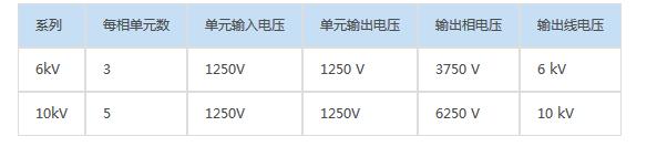 高壓電機(jī)節(jié)電系統(tǒng)根據(jù)電機(jī)額定電壓的不同,功率單元柜每相所串聯(lián)的個(gè)數(shù)也不同,6KV,10KV電壓與功率單元關(guān)系如下:
