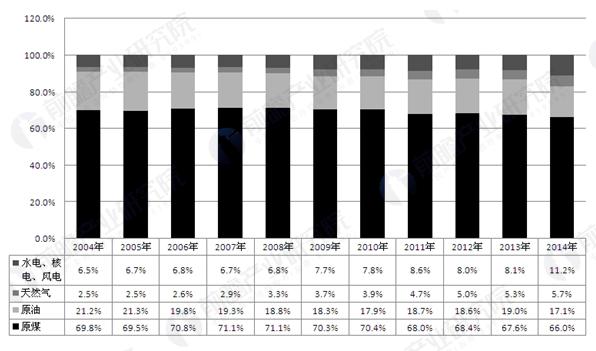 2004-2014年我國能源消費結(jié)構(gòu)(單位:%)