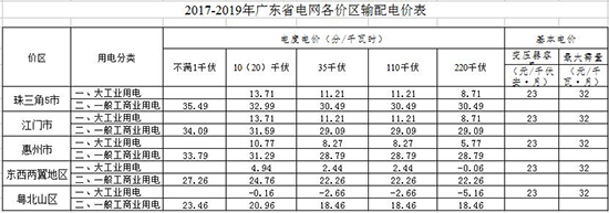 附件:2017-2019年廣東省電網各價區(qū)輸配電價表
