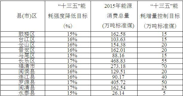 十三五”各縣(市)區(qū)能耗總量和強度“雙控”目標