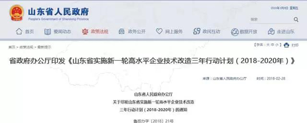 日前,山東省印發(fā)了《山東省實(shí)施新一輪高水平企業(yè)技術(shù)改造三年行動(dòng)計(jì)劃(2018-2020年)》(以下簡(jiǎn)稱“行動(dòng)計(jì)劃”)。旨在充分發(fā)揮企業(yè)技術(shù)改造在推動(dòng)工業(yè)轉(zhuǎn)型升級(jí)中的重要作用,促進(jìn)全省企業(yè)技術(shù)改造向更廣領(lǐng)域更高水平發(fā)展,加快推進(jìn)工業(yè)領(lǐng)域新舊動(dòng)能轉(zhuǎn)換,實(shí)現(xiàn)制造強(qiáng)省建設(shè)目標(biāo)。