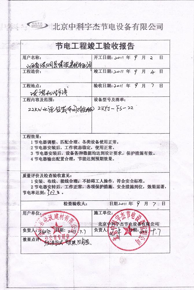 安裝調(diào)試驗收,節(jié)能效率達(dá)到30.7%,投資回報期一年半,按質(zhì)保十年計算,此項節(jié)能工程能為山西洪洞縣曉波建材有限公司帶來四百多萬人民幣的直接經(jīng)濟(jì)效益。